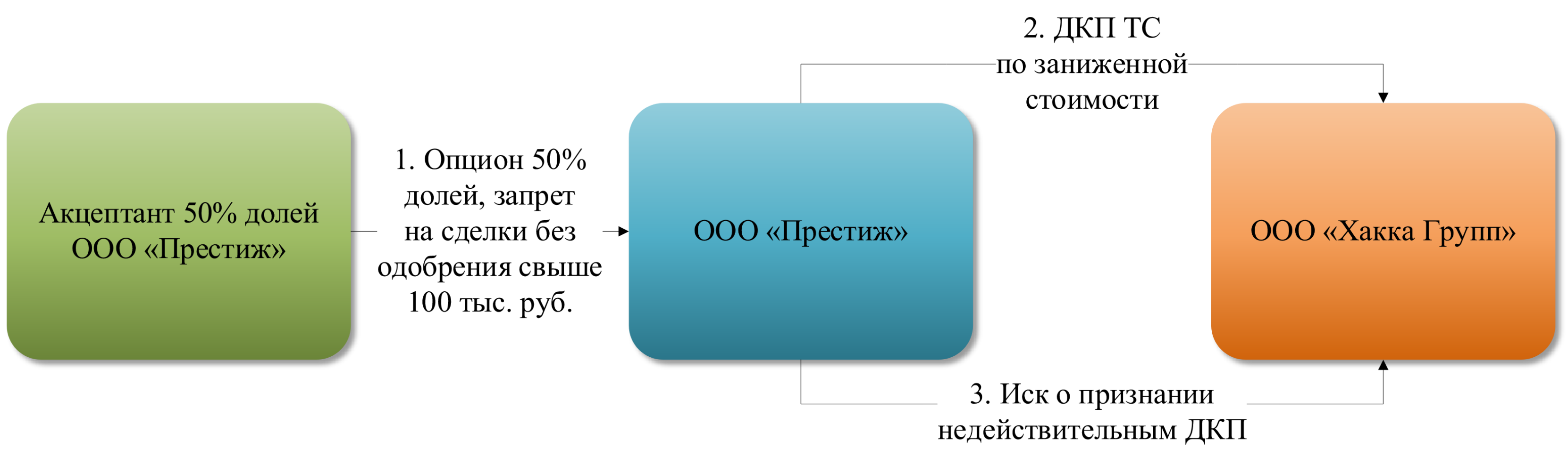 На этом примере хорошо видно, что сам по себе опцион не защищает акцептанта от недобросовестных действий участника общества по выводу активов.